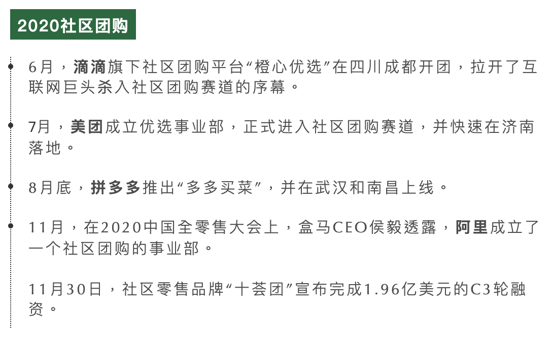 2020年疫情催化,社区团购再度火上风口,迎来了新一轮发展,互联网大厂也都纷纷布局社区团购。