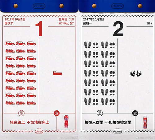 杜杜和小米都选择把国庆七天制作成黄历的形式,分七天发布,这样容易让用户对之后的内容产生期待感,但前提是文案了得。