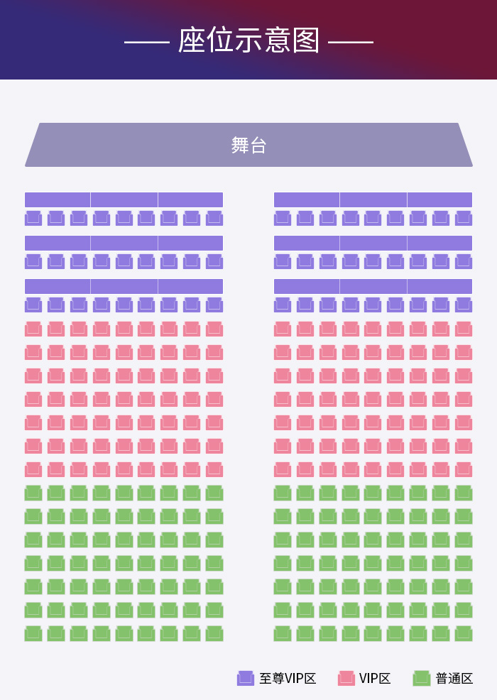 3、不同价位门票,分别对应不同位置区域,具体座位根据票务类型和购买时间进行排序;