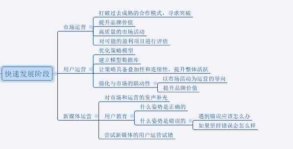 通过第二阶段的市场优质渠道挖掘,提升品牌价值,不断试错的运营方法,和对新媒体有了准确定义之后。各方面准备完善便进入了项目的快速发展阶段。