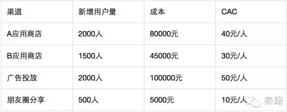 我们要对CAC深入分析,切勿拿总投入/新增用户总数计算,而是需要区分不同渠道单独计算。